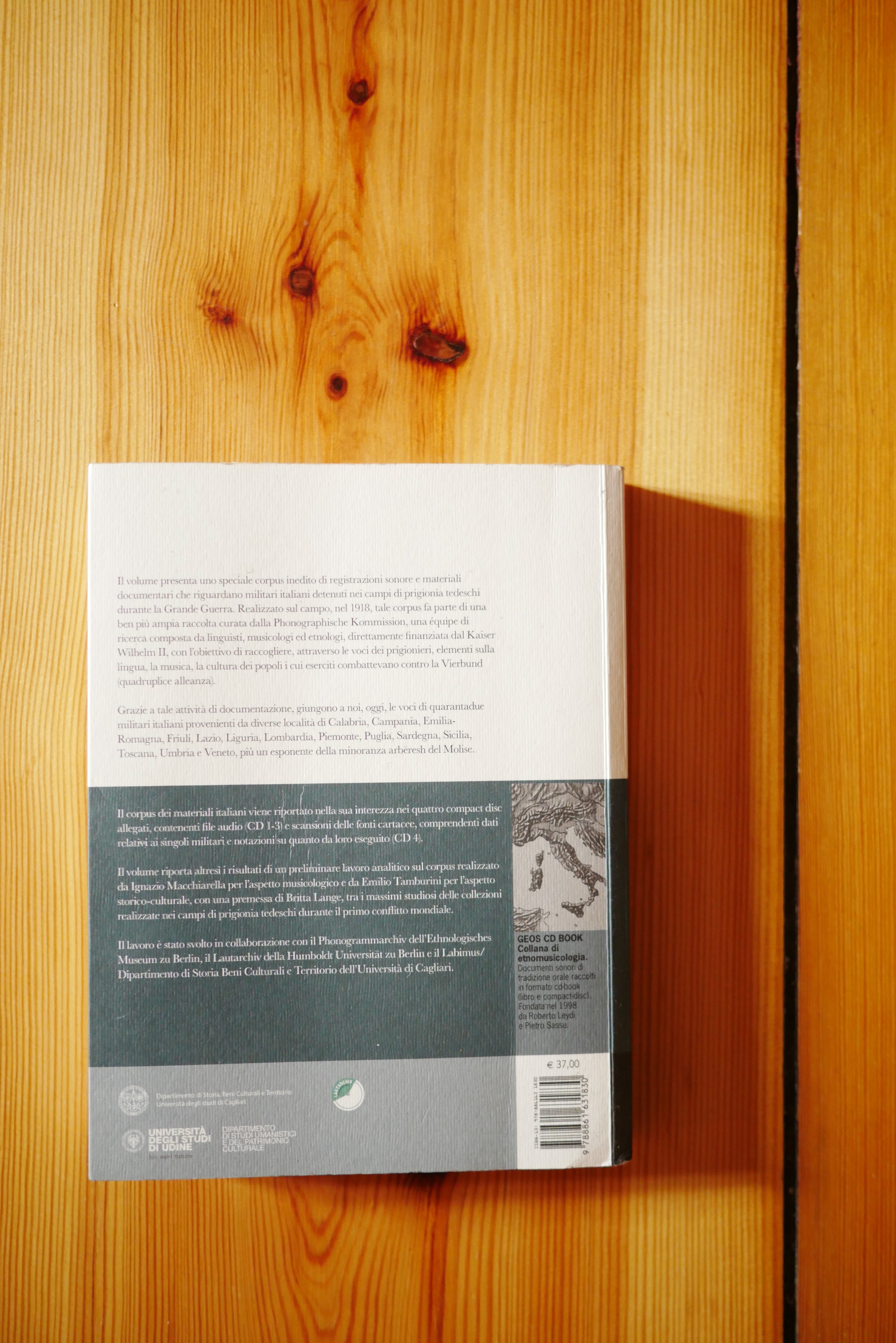 The volume is the result of many years of research, carried out by Ignazio Macchiarella for the musicological side and by Emilio Tamburini for the historical-cultural side. The four CDs attached contains the corpus of the archival documents in its entirety: the digitalized sound materials and the scans of documents, with data of the recorded prisoners and transcriptions of the pieces they performed.